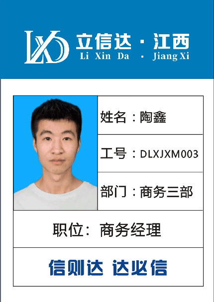 姓名:陶鑫 工號:DLXJXM003 部門:江西三部 職位:商務經理