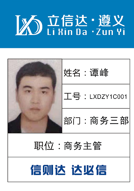 姓名:譚峰 工號:LXDZY1C001 部門:遵義三部 職位:商務主管