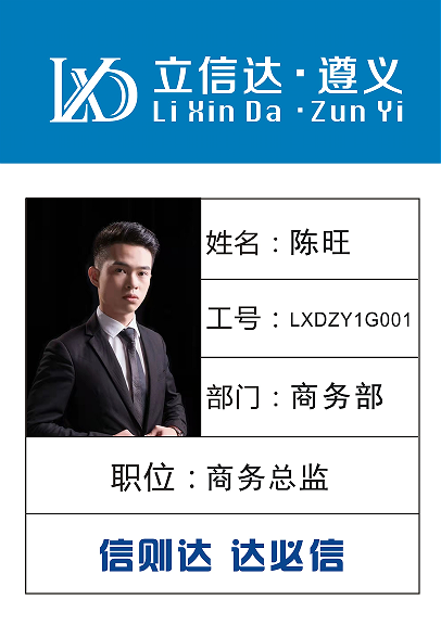 姓名:陳旺 工號:LXDZY1G001 部門:遵義商務部 職位:商務總監