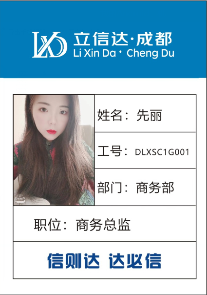 姓名:先麗 工號:DLXSC1G001 部門:川一商務(wù)部 職位:商務(wù)總監(jiān)