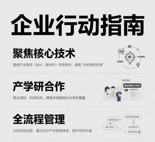 ●聚焦核心技術:圍繞產業需求(如AI、新材料)布局專利,避免“為申請而申請”。