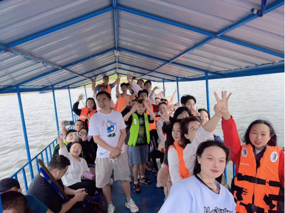 到了地方之后,開始了安營扎寨,過程雖有波瀾,但好在大大小小的帳篷都拔地而起,熱鬧過后看到了??吭诎哆叺拇?,大家又不約而同的決定乘船。山里長大的孩子總是對水情有獨鐘,等了一會,船終于開了,風(fēng)很大,卻吹不走美妙的景色,吹不走我們的熱情。