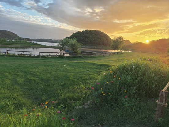 記不太清那天是周幾了,依稀記得那是個陽光明媚的午后,在一聲聲歡呼聲中,大家朝著同一個方向出發(fā)--我們第一次露營的目的地。那是一處被青山包圍的山谷,走進(jìn)去有小湖泊,青草地,小樹林。