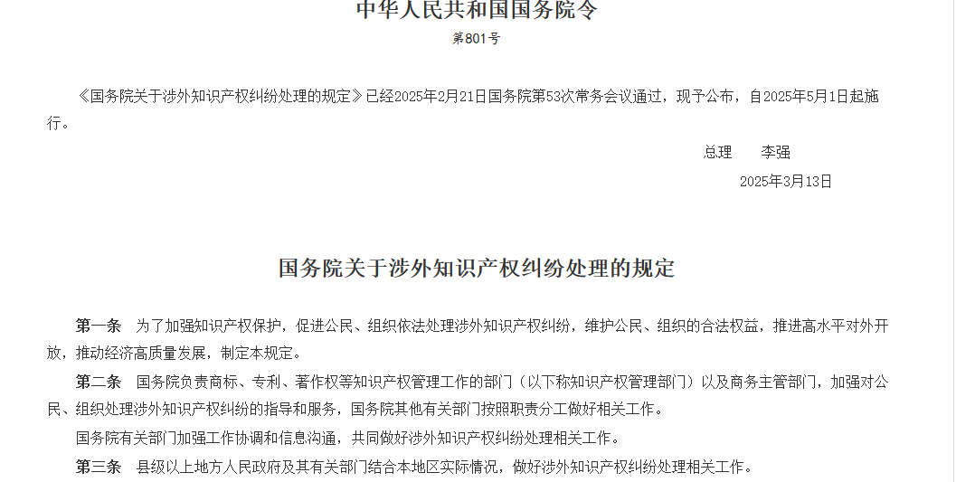 自2025年5月1日起,《國務院關于涉外知識產權糾紛處理的規定》正式實施,新規明確政府將加強指導和服務,支持調解、仲裁等高效解決糾紛的方式,并鼓勵企業設立維權互助基金,降低維權成本。無論是出海企業還是深耕國內的公司,都能更安心地維護自己的權益。新規的出臺,標志著我國在知識產權保護方面邁出了重要的一步,為國內外企業提供了更加公平、透明的法律環境,進一步激發了創新活力和市場活力。
